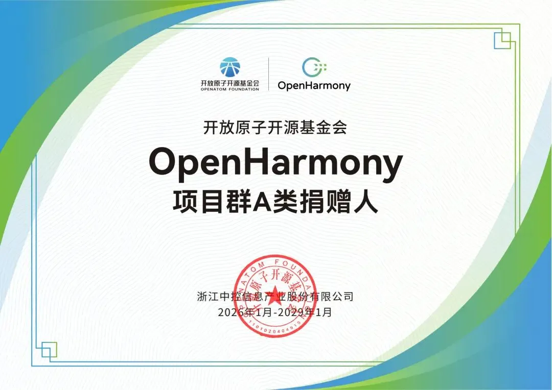 近日,中控信息正式加入开放原子开源基金会,成为开放原子开源基金会黄金捐赠人和开源鸿蒙项目群A类捐赠人,这一里程碑事件标志着公司在技术创新道路上迈出了重要一步。中控信息将携手旗下子公司浙江开鸿智控数字科技有限公司(简称“浙开鸿”)深度布局建筑鸿蒙赛道,基于OpenHarmony打造安全可信、开源开放的智慧建筑全栈产品与解决方案,助力智慧建筑领域技术突破与生态共建。