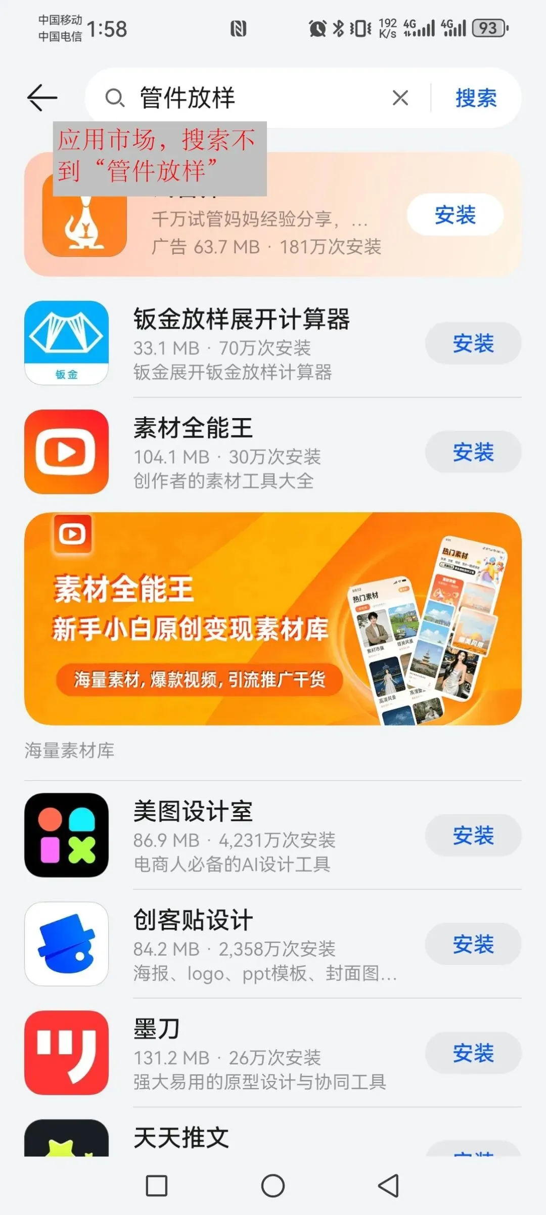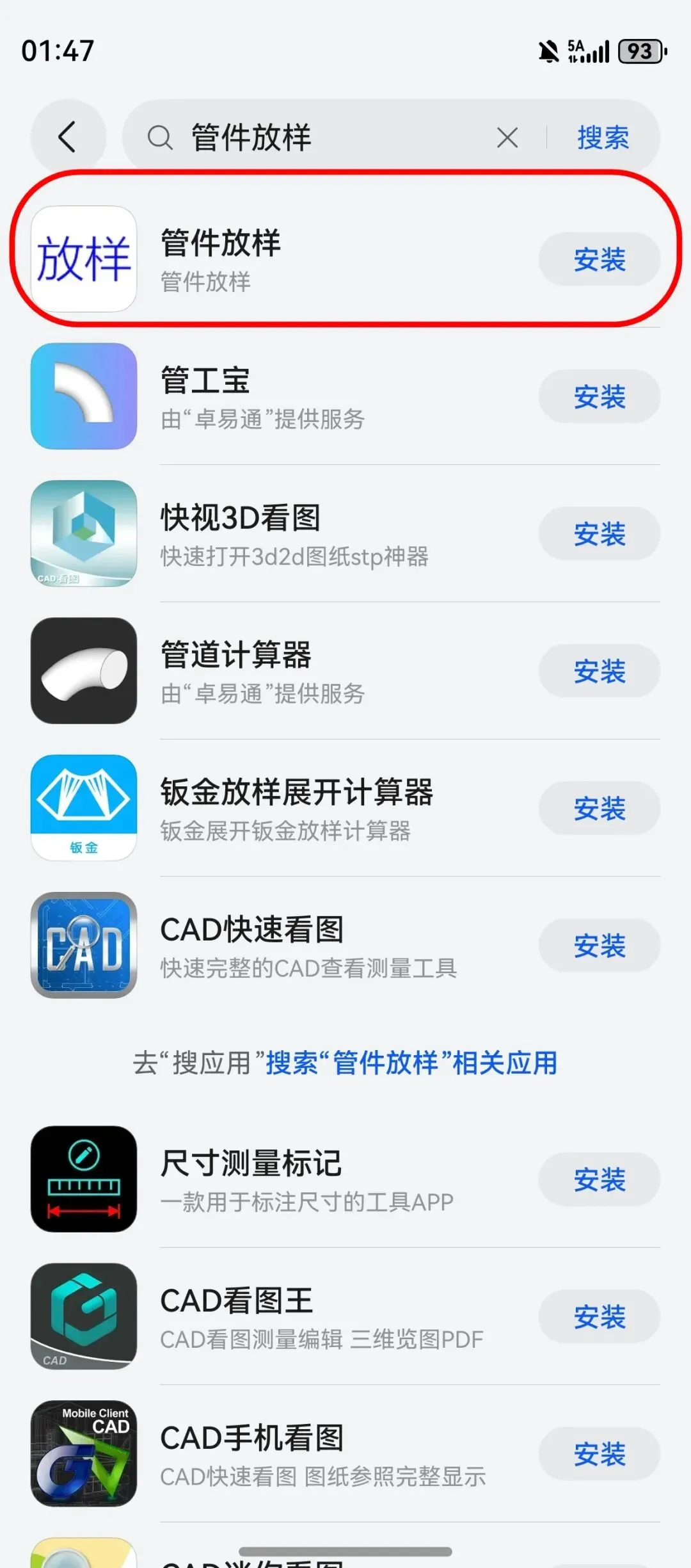 这种系统的华为手机,打开应用市场搜索“管件放样”是搜不到的,因为