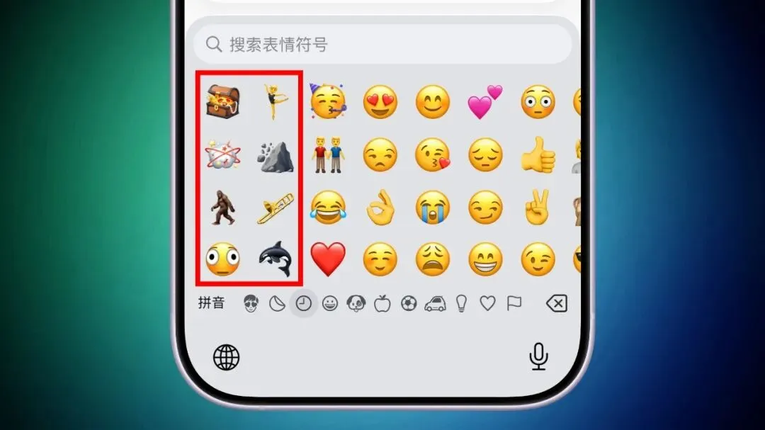 表情符号键盘中新增 8 个表情符号,其中包括虎鲸、长号、山体滑坡、芭蕾舞者和变形的脸等。
