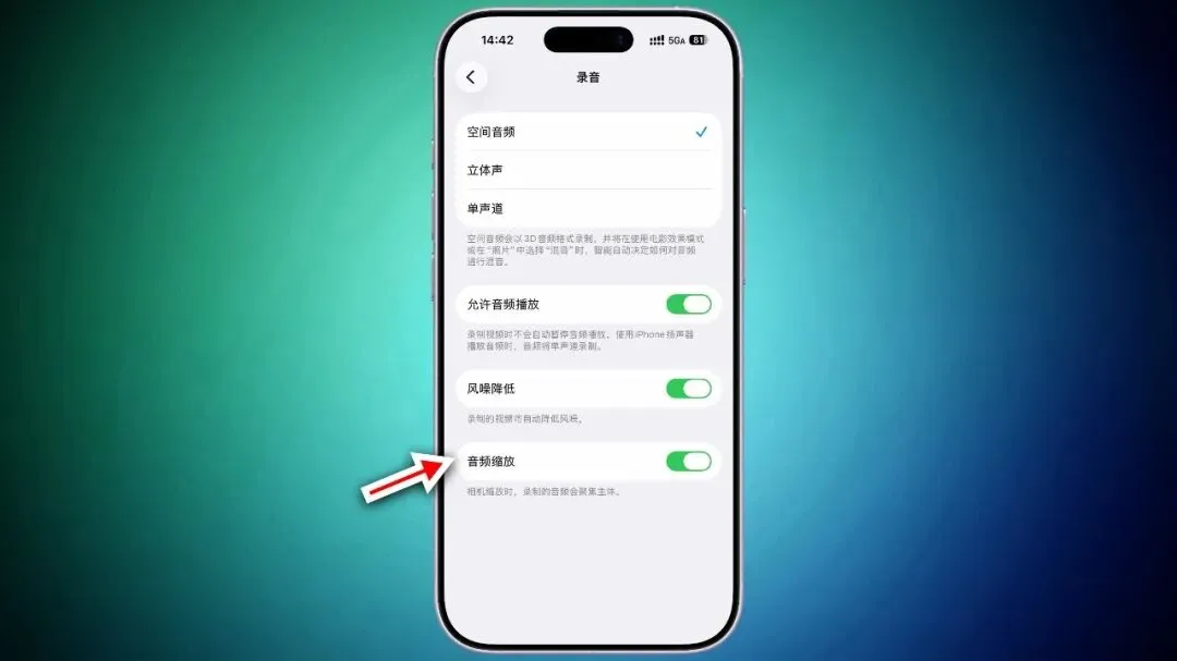“相机”设置里新增「音频缩放」开关,开启后视频录制过程中相机进行变焦时,录制的音频将聚焦于拍摄对象。