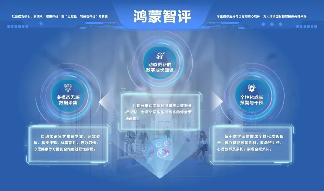 应用层:生成学生、教师、学校三大画像,实现个性化教学与评价。