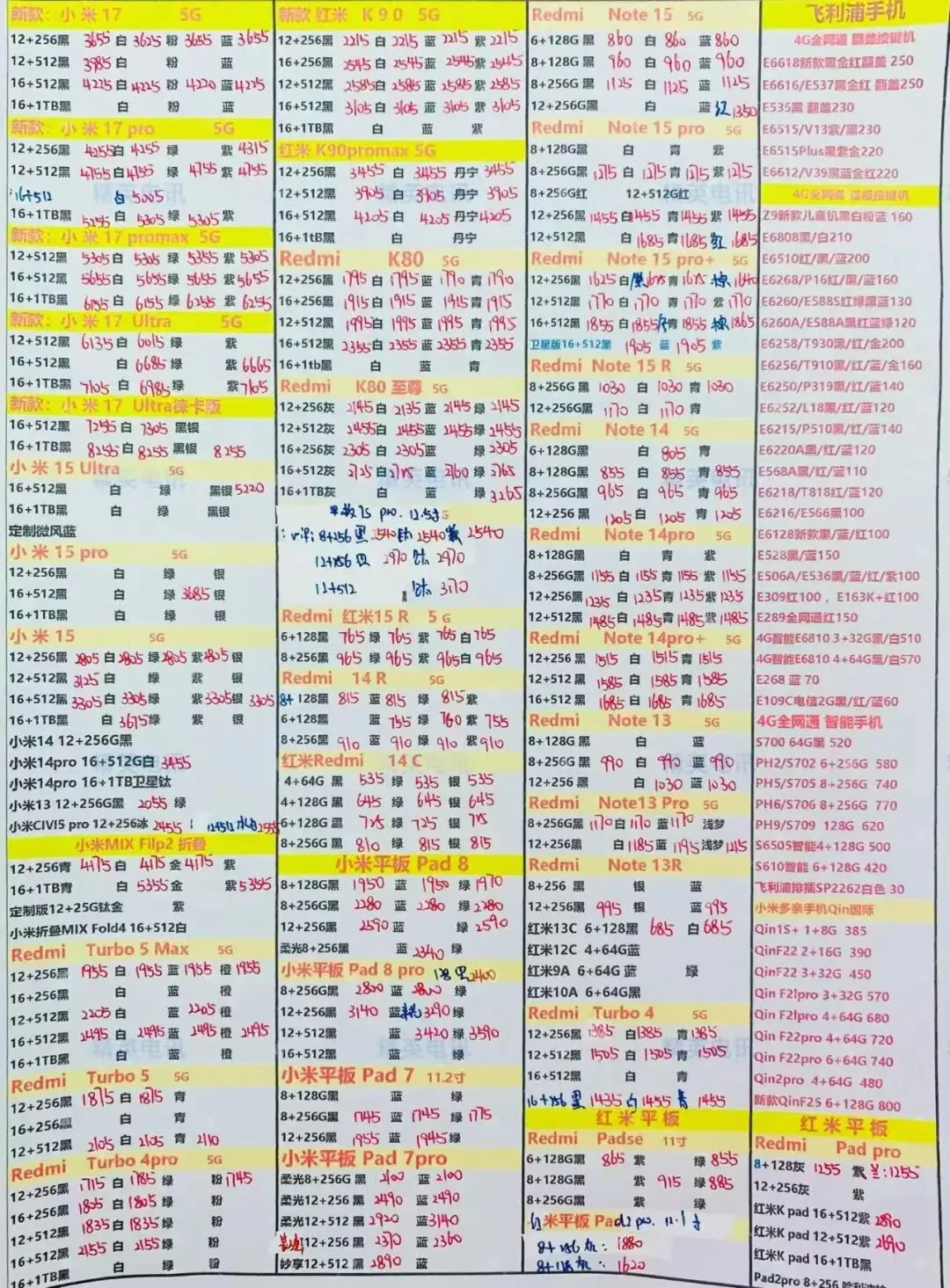 以下报价都是深圳华强北手机批发市场当天的最新批发价格(不含税),报价是我们的批发底价,零售拿货价格需加20~100元不等,京东包邮(量大价格可谈)
