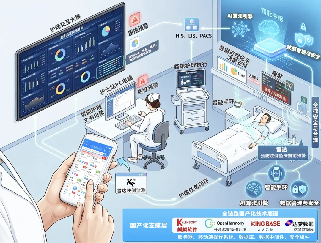 此次合作的核心,在于将鸿蒙分布式技术与临床护理工作深度融合。依托爱汇健康全栈信创适配、多设备分布式互联、AI智能预警等核心优势,双方将共同打造高效、便捷、安全的智慧护理新范式。这不仅将有效提升护理工作效率与患者就医体验,更将为医疗鸿蒙技术在护理领域的标准化应用积累可复制、可推广的实践经验,为后续更多医疗机构的数字化转型提供参考样本。