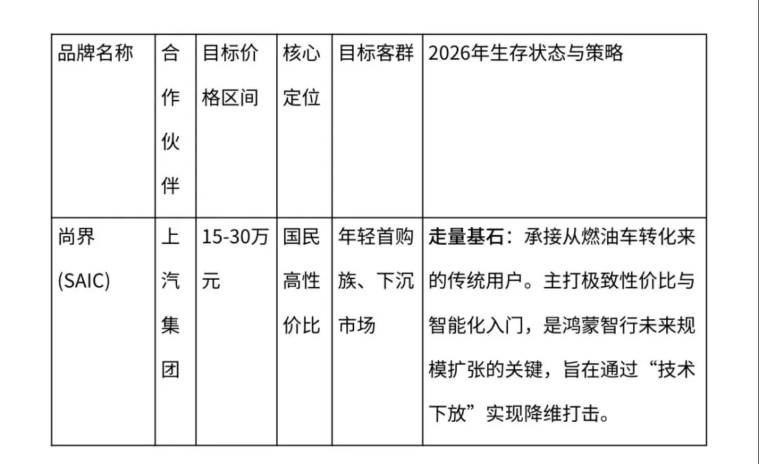 表1 鸿蒙智行“五界”品牌定位与生存逻辑对比