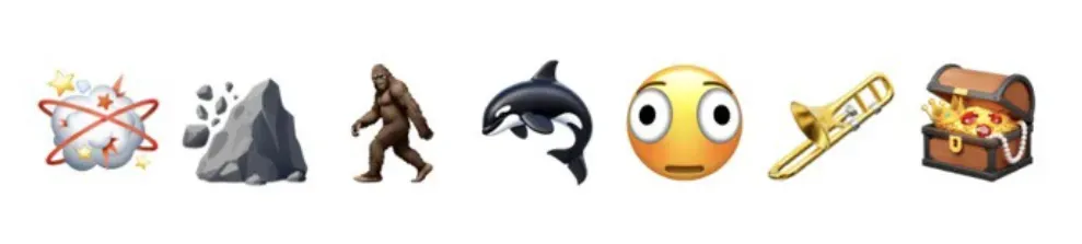 比如emoji表情新增了打斗云团 、山体滑坡、长毛生物、虎鲸、变形的脸、长号、宝箱等新表情;