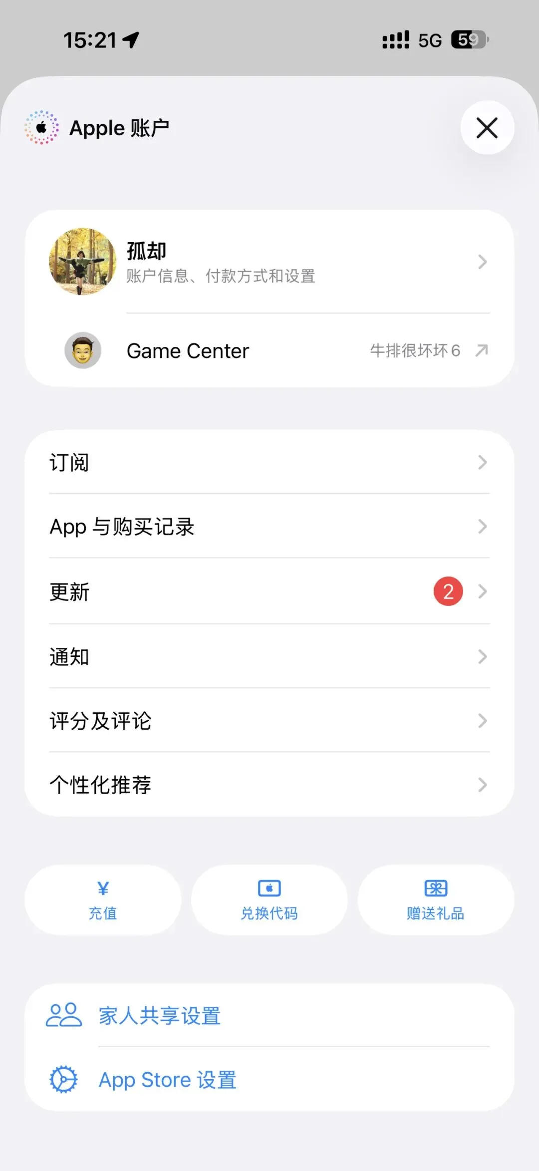 包括App Store、Apple Music在内的所有带Apple账户入口的系统应用,账户页面全部统一为全新设计。以App Store为例,应用更新列表被归纳进了二级菜单,