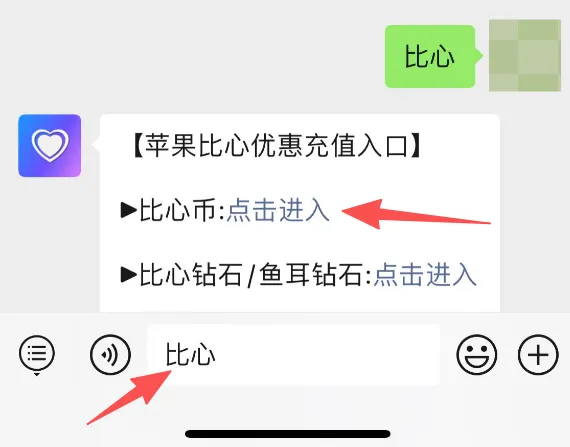 一、苹果IOS用户比心币/比心钻石公众号充值方法
