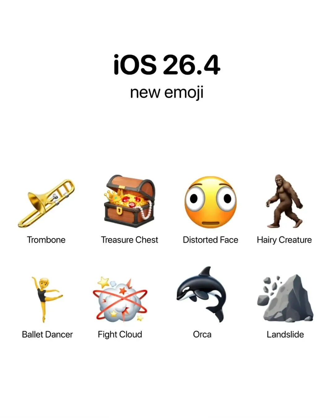 ·表情符号键盘中新增8个表情符号,其中包括虎鲸、长号、山体滑坡、芭蕾舞者和变形的脸