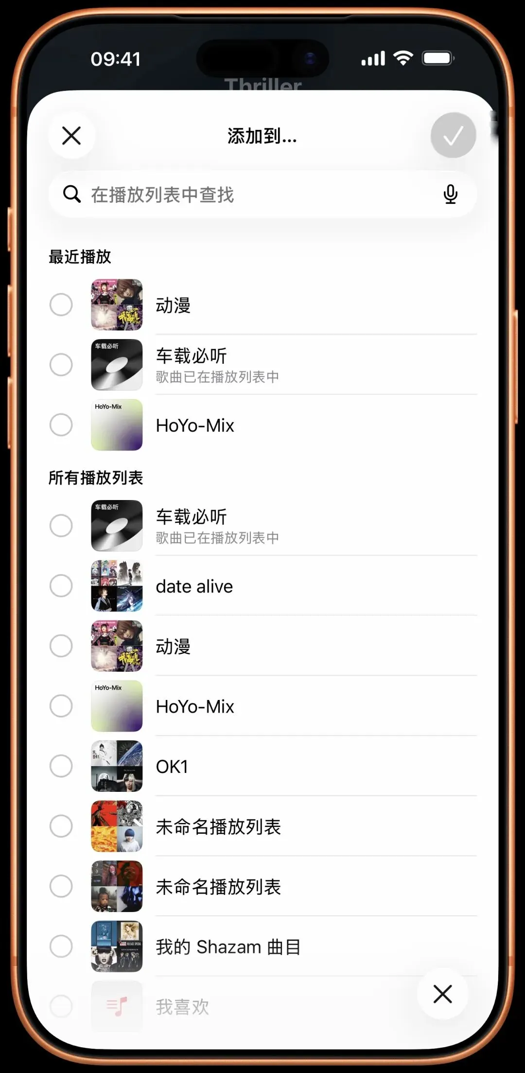 可以通过输入文字描述(如心情、场景等),由AI自动生成歌单,还会附带标题和简介。(需要Apple智能,国行无缘上线)