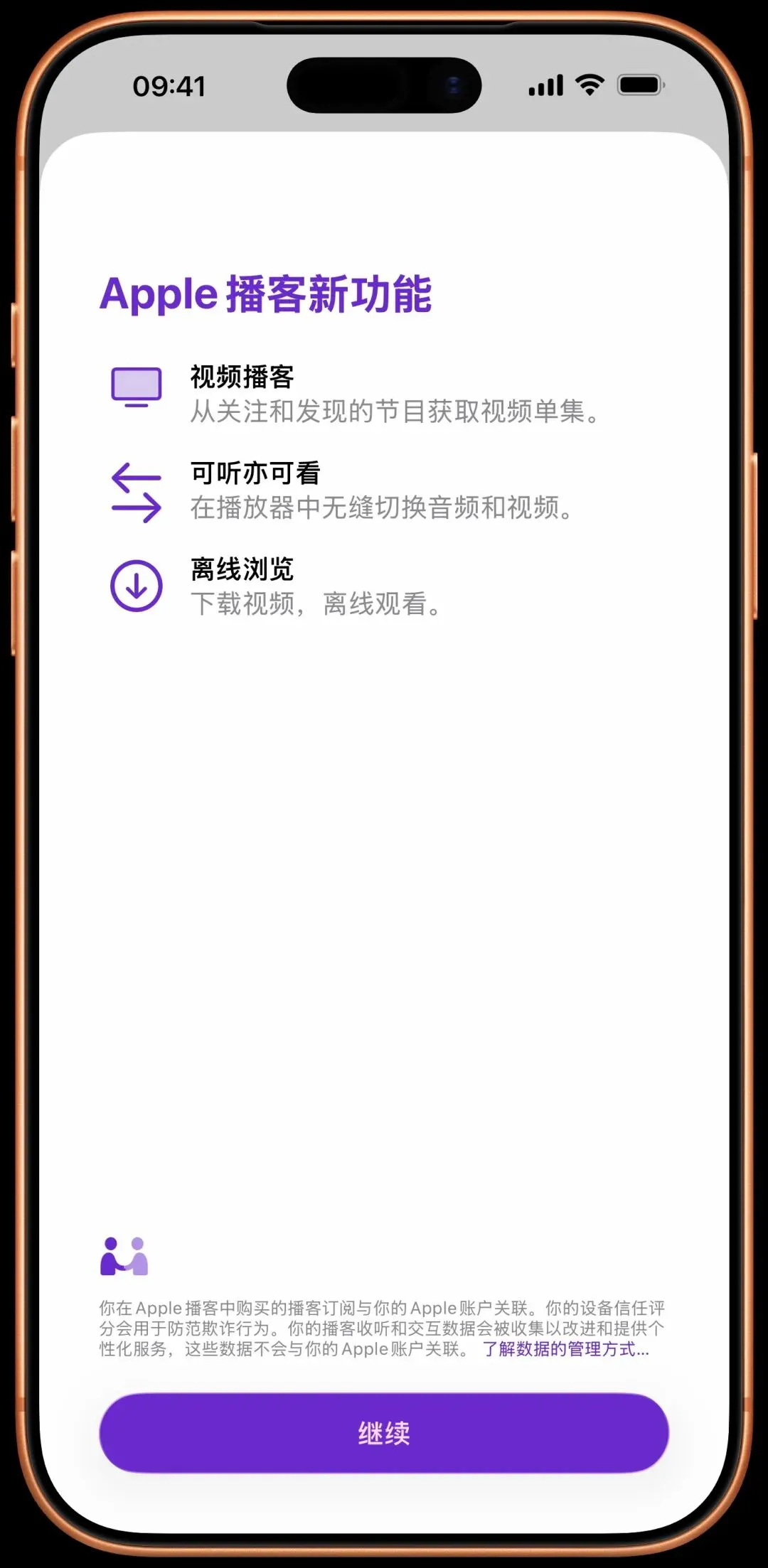 支持视频播客,可无缝切换音频和视频,可下载视频离线观看。
