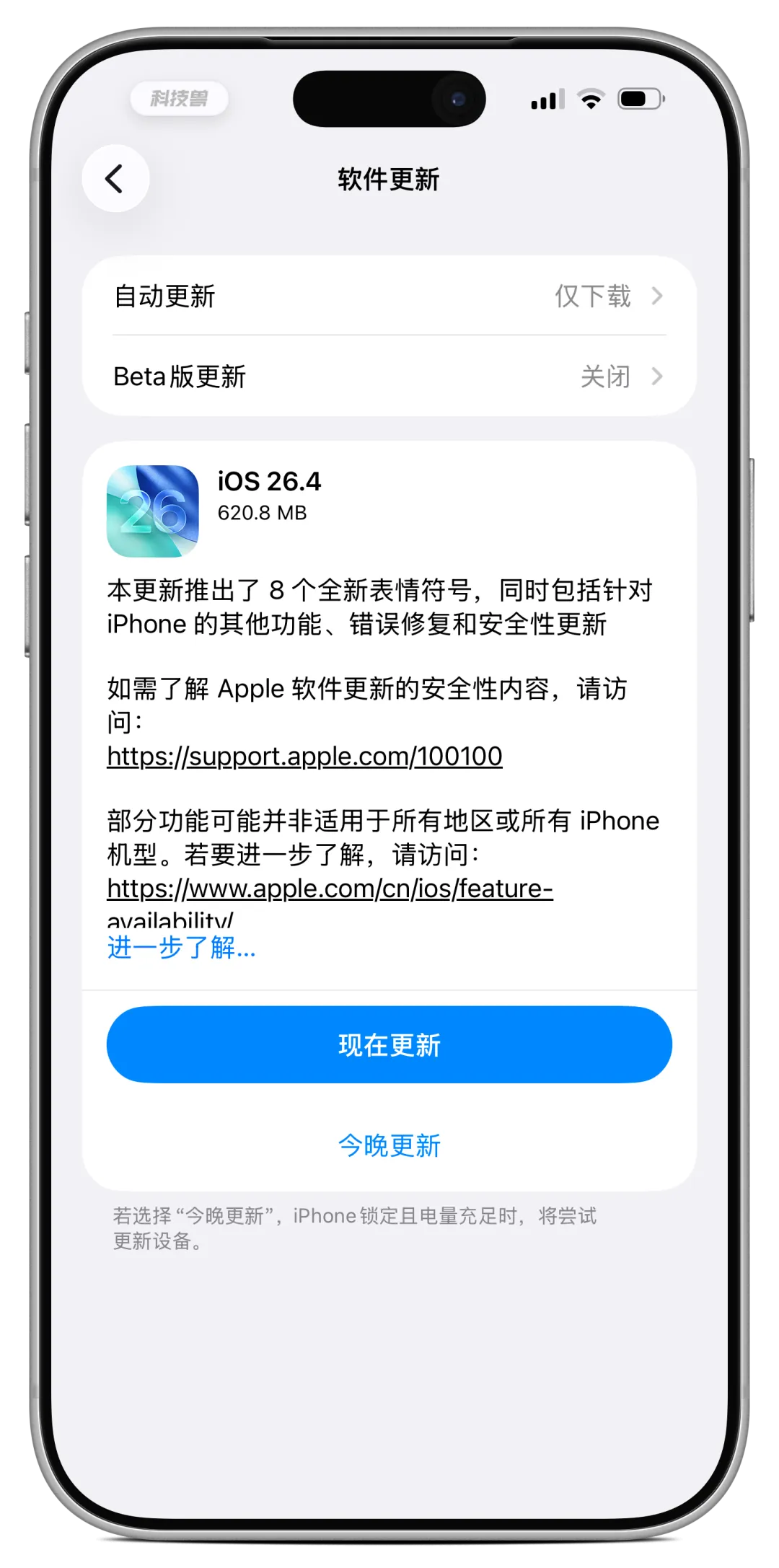 苹果在今天 3 月 25 日凌晨向用户正式推送了 iOS 26.4 正式版系统更新,同时到来的还有 iPadOS 26.4、macOS 26.4、watchOS 26.4 等一系列系统更新。