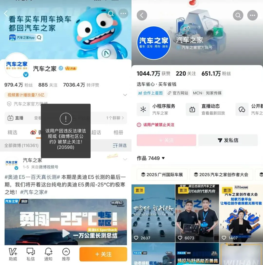 近日,国内头部汽车垂直平台汽车之家的新浪微博、抖音、快手、哔哩哔哩等多个平台的官方账号出现无法被用户正常关注的异常情况,相关话题迅速登上社交平台热搜榜,引发全网对事件原因的广泛讨论。不过到3月25日,汽车之家所有平台账号已经恢复正常。