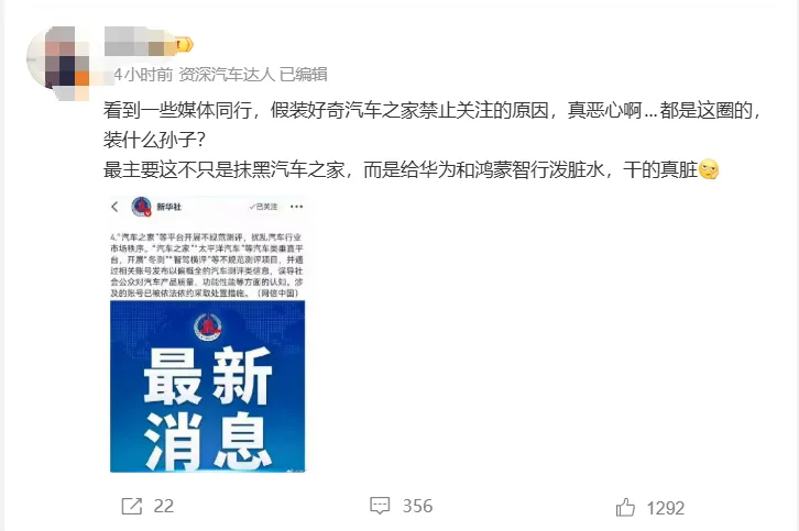 在社交媒体上,多位汽车博主对这种移花接木的做法也进行了抨击。目前,汽车行业正在引导行业竞争进入良性环境,这种泼脏水的行为显然已经触及行业底线。