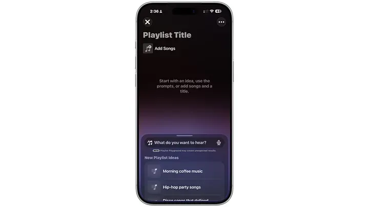 iOS 26.4 里,音乐新增了一项很有可能改变使用习惯的 AI 功能:Playlist Playground。 它最大的意义就是——很多时候,你不用再自己一首首手动建歌单了。