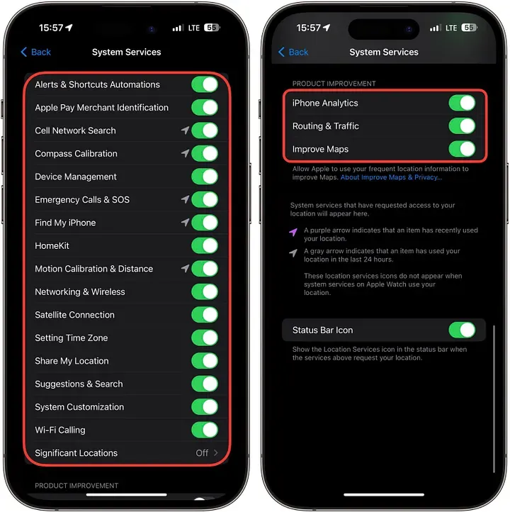 打开:设置 ⚙️ > 隐私与安全 ✋ > 定位服务 ↗️ > 系统服务