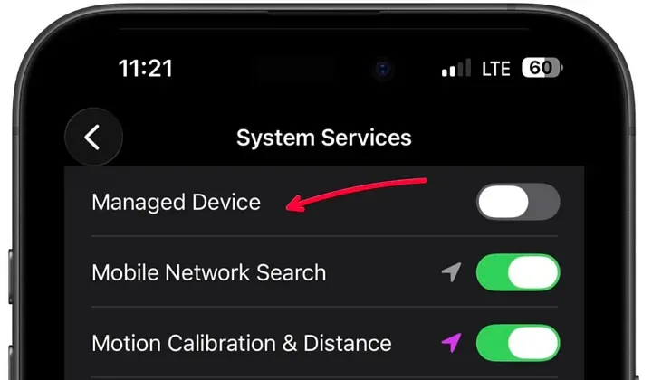 这个开关的具体用途,苹果并没有讲得很明白。 但从字面推断,它大概率和“受管理设备”有关。换句话说,如果你的 iPhone 是公司统一管理的设备,那么把它关掉,可能意味着不再让企业端获取某些定位信息。