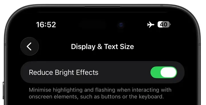 在:设置 ⚙️ > 辅助功能 🚹 > 显示与文字大小 Aa里,苹果新增了一个选项:减少明亮效果