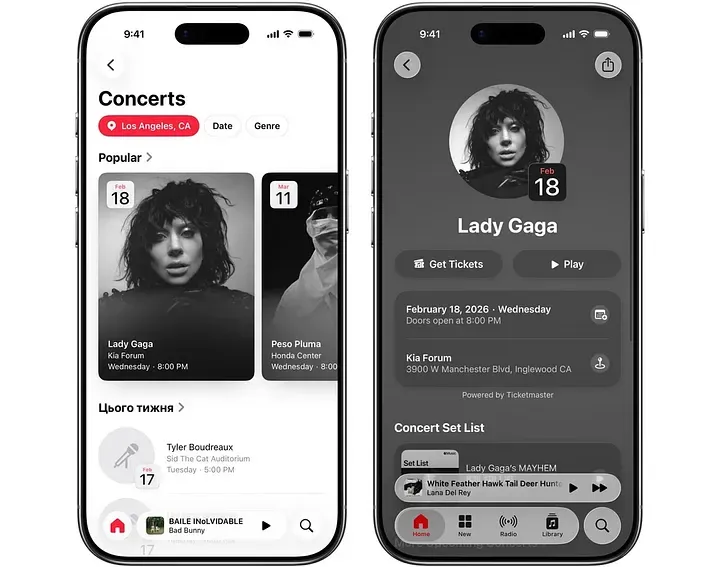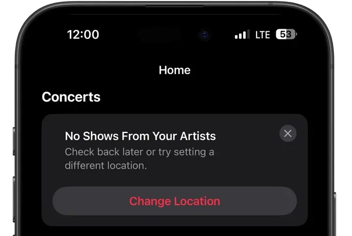 现在,当你在 Apple Music 首页往下滑时,会看到一个新区域:Concerts Near You(你附近的演唱会)