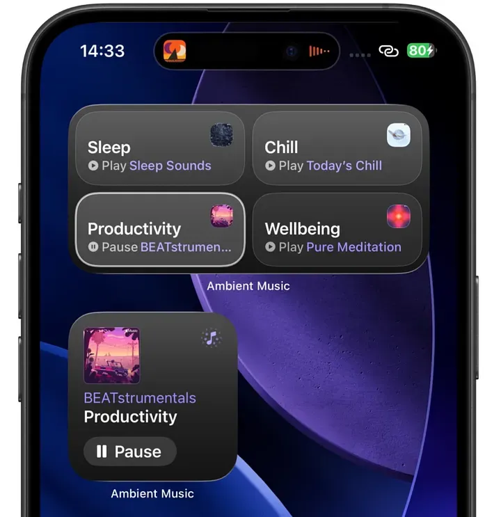 如果你本来就有靠白噪音、轻音乐、环境乐工作或入睡的习惯,这个小组件会非常省事。