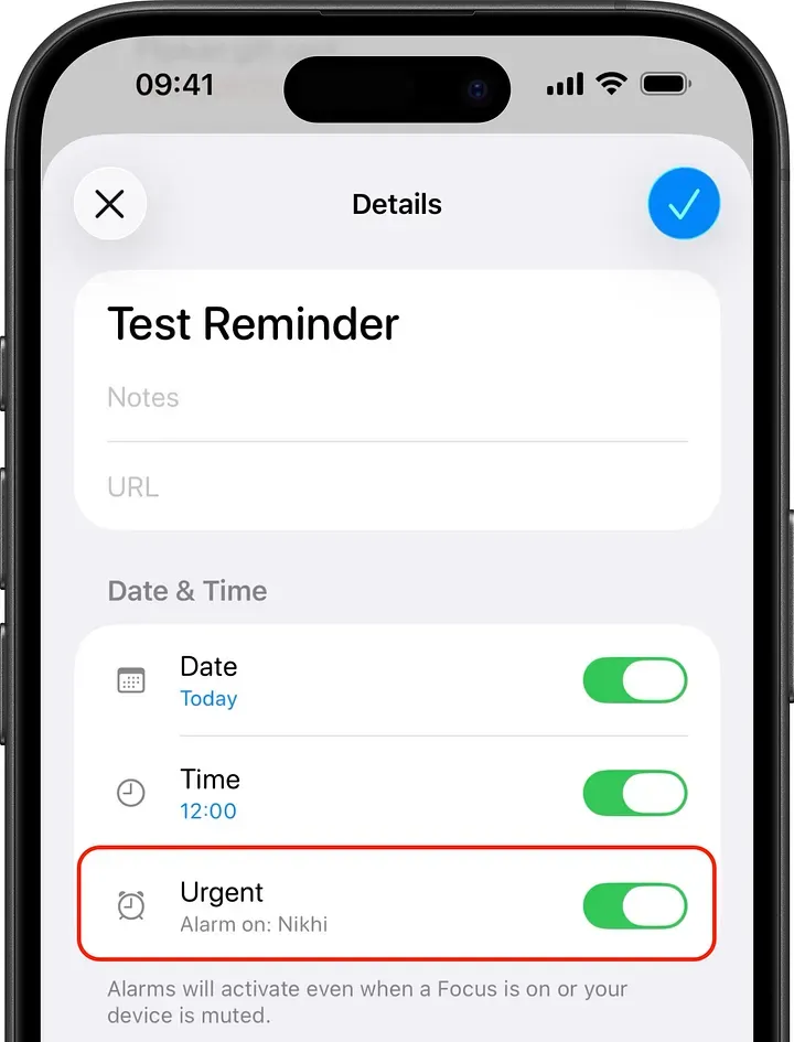 这个功能其实早在 iOS 26.2 就已经出现。 当你把某条提醒标记为 紧急,你就是在授权“提醒事项”无视静音和专注模式,在设定时间直接发出警报。