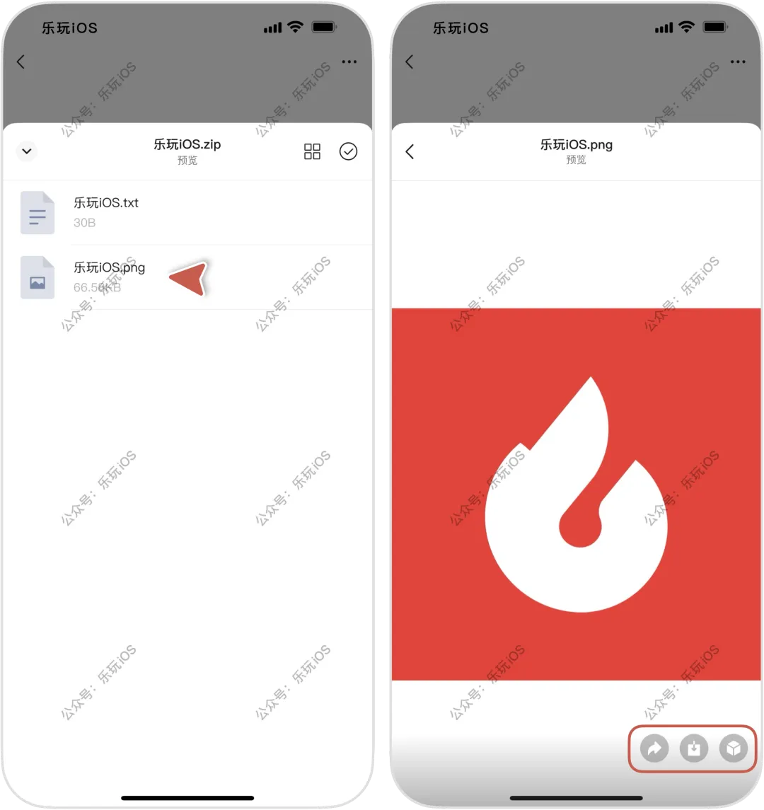 也可以直接点击压缩包内的文件,即可预览文件的详细信息,如查看图片、视频等,右下角也可单独对文件进行转发、下载和收藏