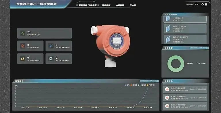 安全预警更是实现“秒级响应”。一旦缺氧或有害气体浓度超标,监测范围达7.5米、精度误差≤±5%的检测仪瞬间触发85分贝以上的声光报警,数据上传云平台延迟不超过1秒,从预警到管理人员手机端收到推送,全程不超过30秒,较传统人工巡查(3-5分钟)效率提升95%。