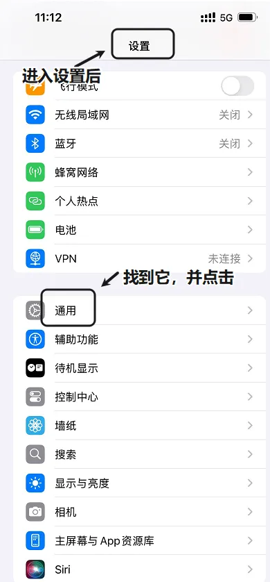 1. 请打开手机的 【设置】 应用,向下滑动并找到 【通用】 选项,点击进入。
