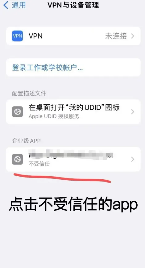 3. 您会看到一个名为 “企业级App” 的栏目,其下方会显示我们开发者的名称。