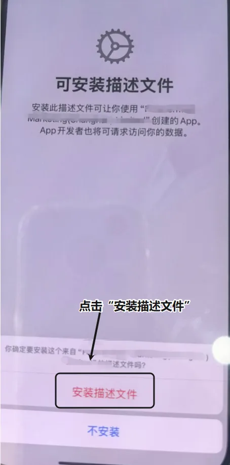 ● 随后,设备将提示您安装描述文件。请前往 【设置】 > 【已下载的描述文件】 (路径可能略有不同),找到对应文件并点击安装,根据提示完成此步骤。