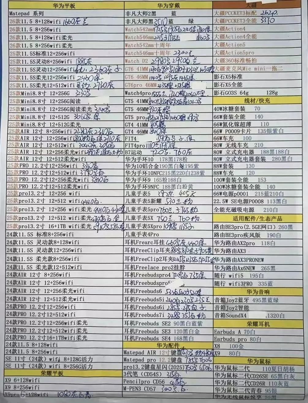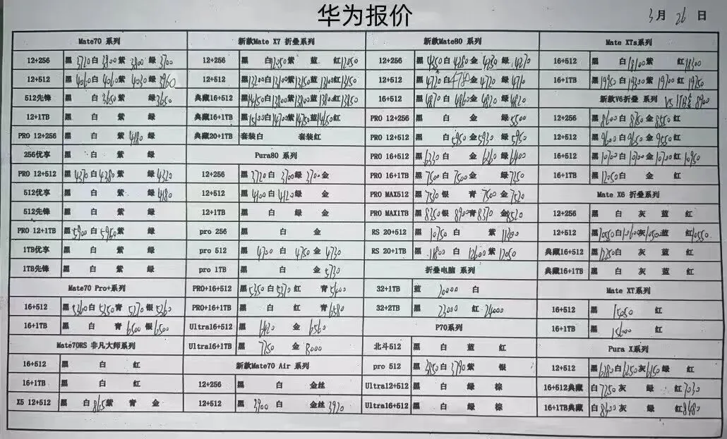 华为平板手表和三星报价不常更新