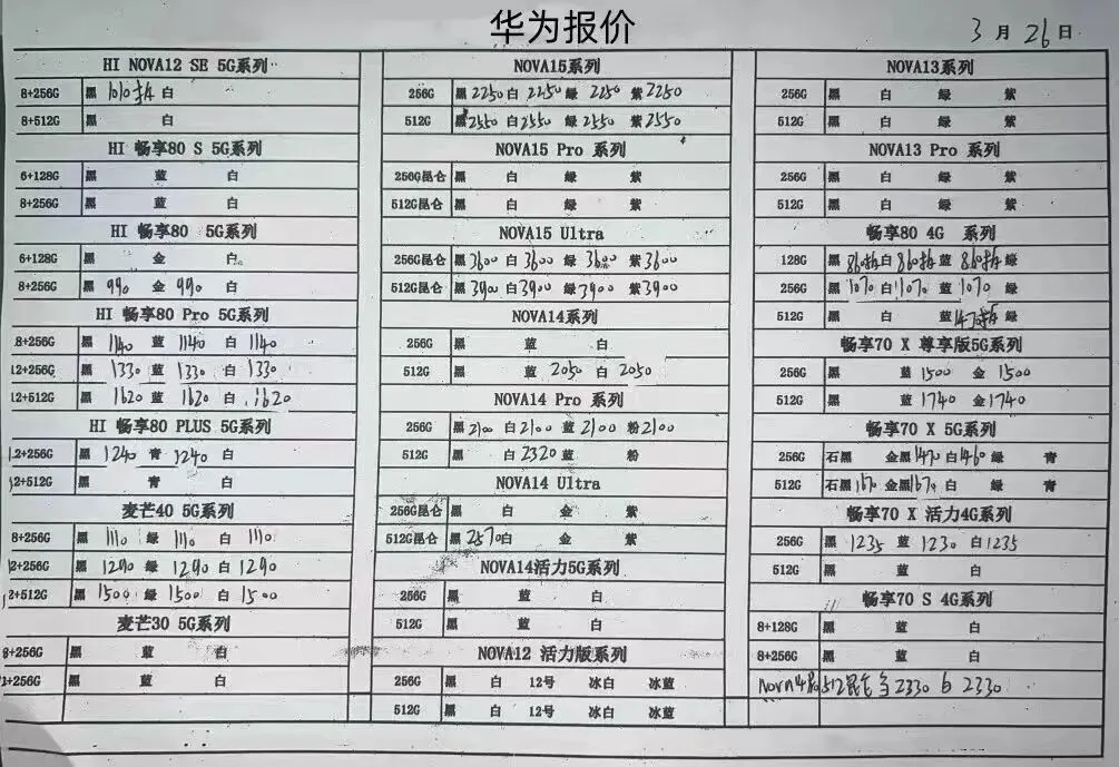 260326安卓手机报价