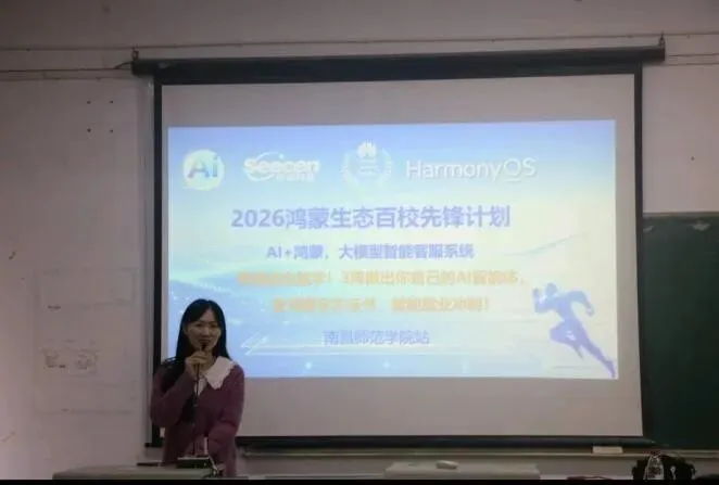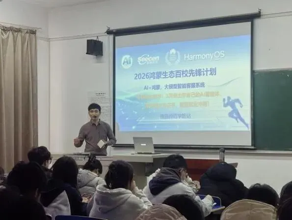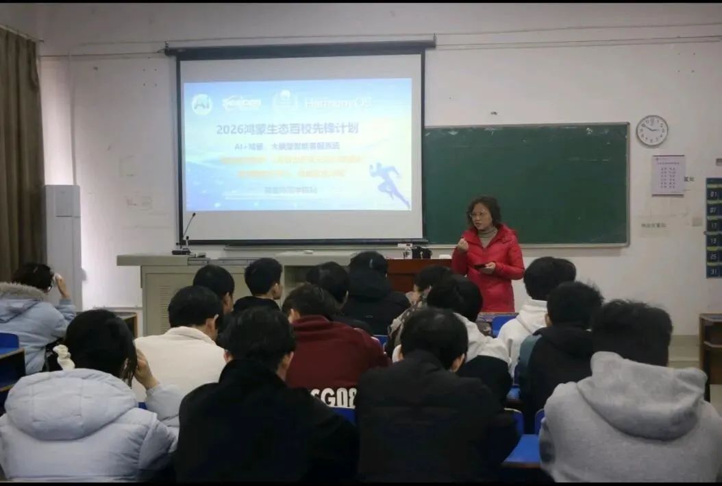 为深化产教融合,推动人工智能赋能人才培养和学生高质量就业。2026年3月24日,数学与信息科学学院联合华为鸿蒙生态合作伙伴—江西思诚科技,在致知楼成功举办“2026鸿蒙生态百校先锋计划AI智能体开发”专题宣讲会。2023级计算机科学与技术、数据科学与大数据技术专业和2026届毕业生代表共160余名同学参加了本次活动。