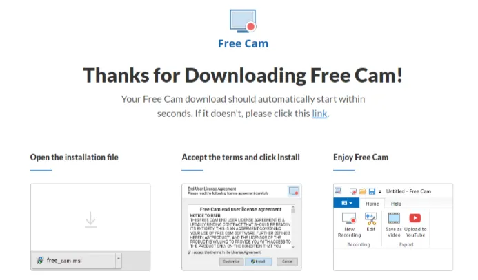 Free Cam的录制功能包含全屏、自定义区域和窗口三种模式,用户可根据实际需求灵活选择。录制完成后,文件可直接保存至桌面,或通过软件内置的YouTube分享功能快速上传,操作流程简洁直观,对新手用户比较友好。