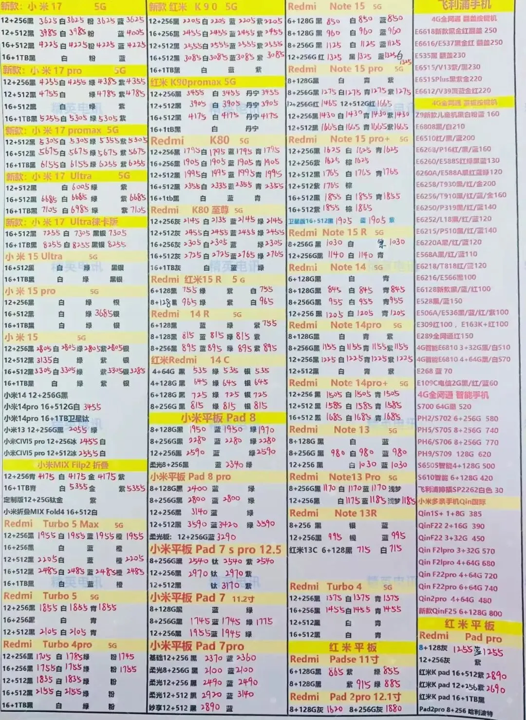 以下报价都是深圳华强北手机批发市场当天的最新批发价格(不含税),报价是我们的批发底价,零售拿货价格需加20~100元不等,京东包邮(量大价格可谈)