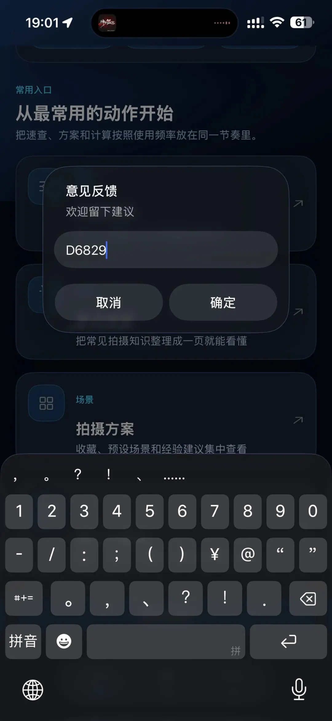2️⃣、在意见反馈中输入D6829