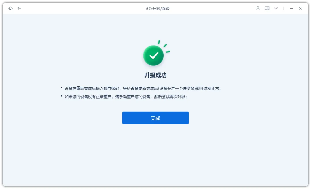 步骤2:选择升级功能,点击【升级】获取可升级iOS固件
