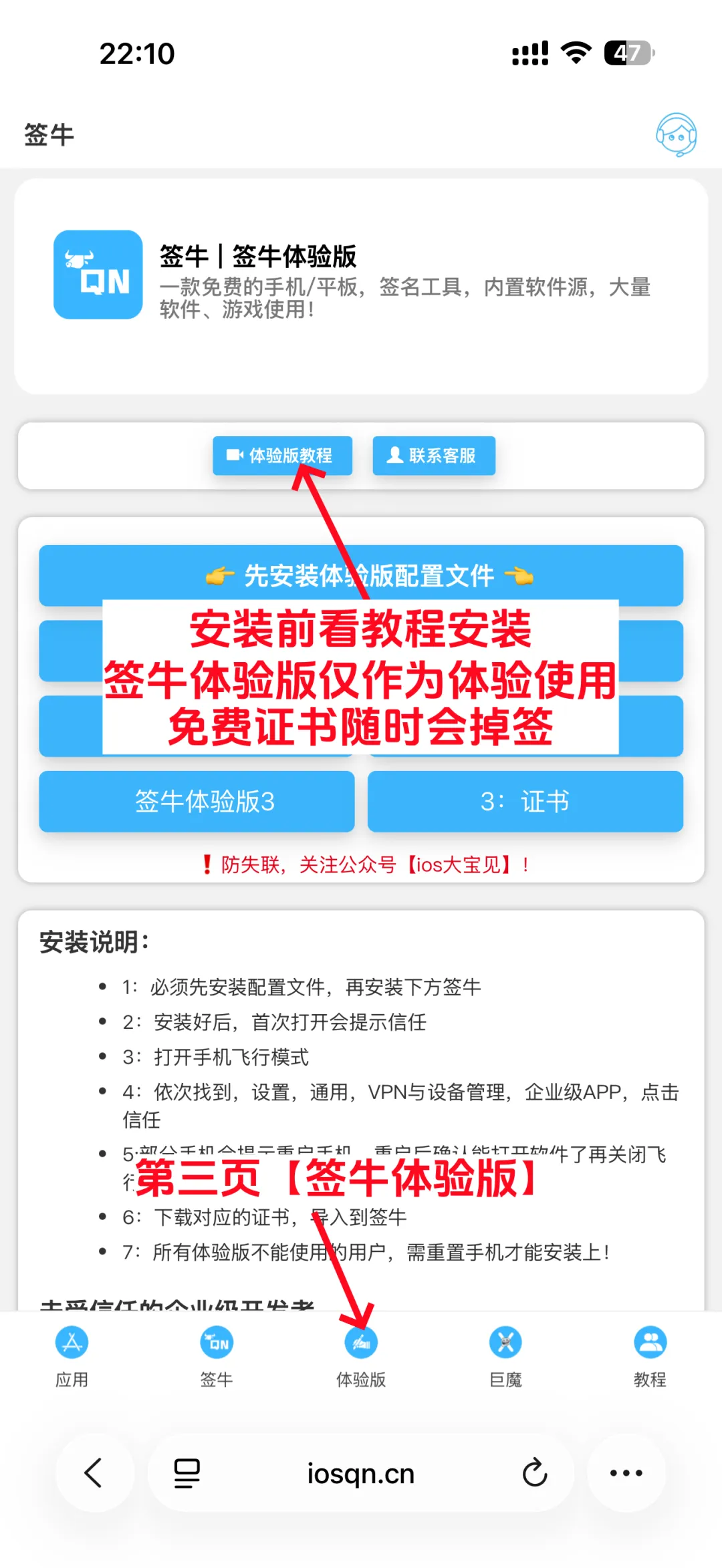 【第三页】签牛体验版页面,是安装稳定版前,先体验一下我们高端定制的签名工具,有多夯。