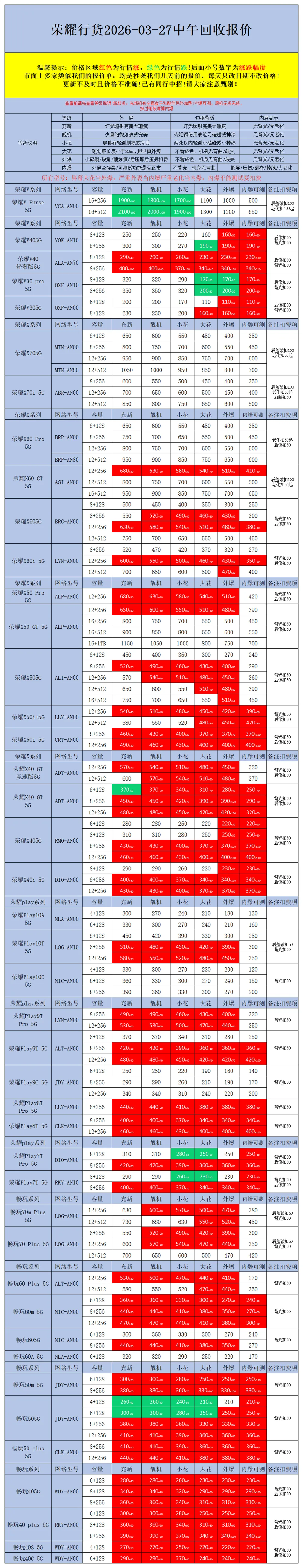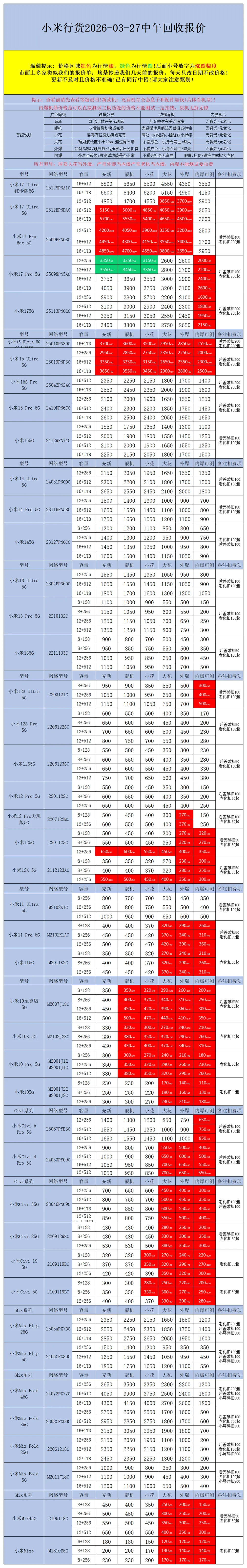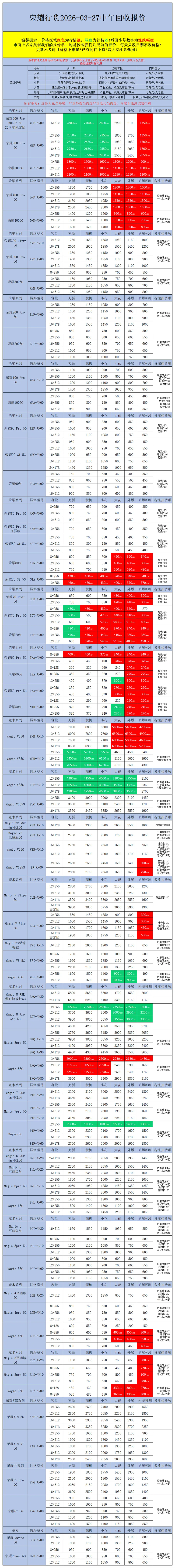 【安卓】二手机回收报价2026-03-27