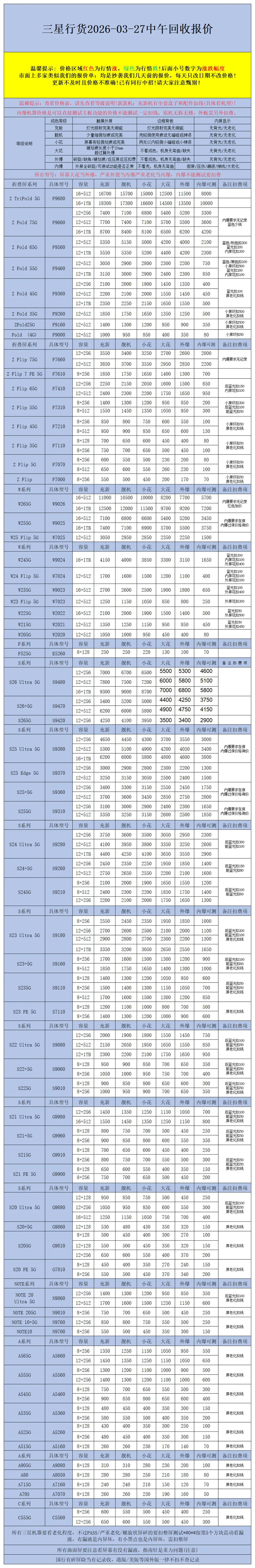 >【安卓】二手机回收报价2026-03-27