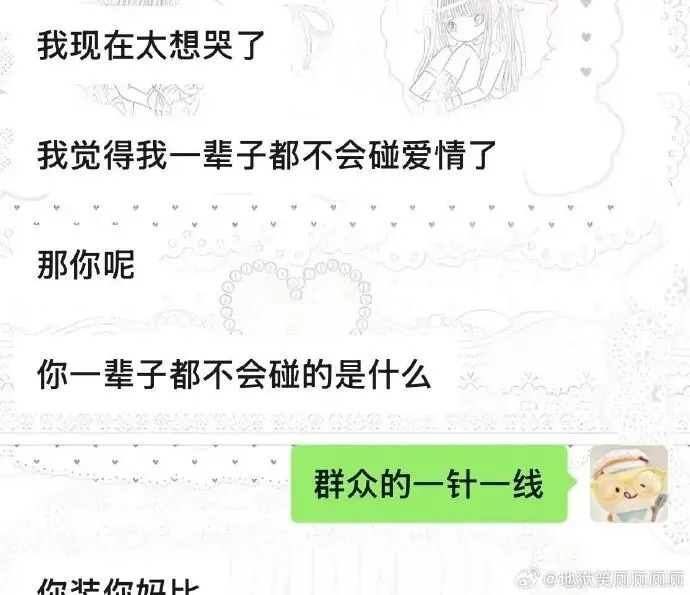 在网上见到特别戾气的人千万别搭话,本来它是嗷嗷对着空中乱咬的丧尸,你一搭话,就是给了它一座爬向你的桥,很吓人的。你走开就是了,不要建立链接。#望周知#