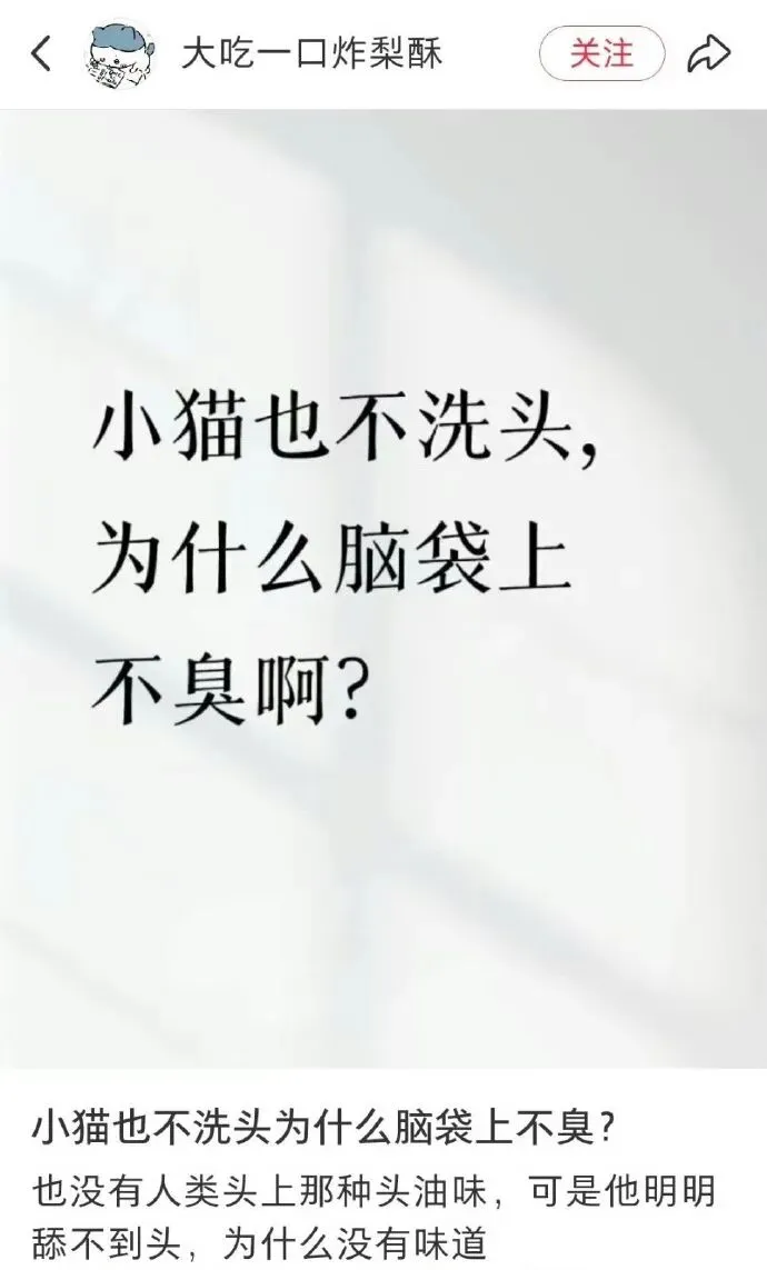 小猫不洗头,为什么脑袋不臭呢
