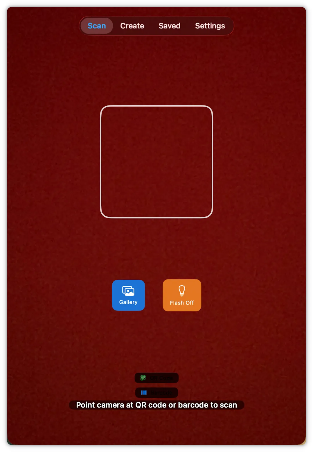 首页是扫码功能,可以扫描任何二维码和条形码