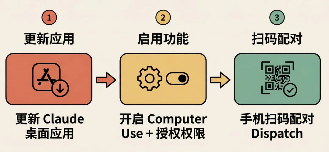 你人在外面喝咖啡,电脑在家吭哧吭哧跑任务。这可不是远程桌面——远程桌面你得盯着屏幕一步步操作,Dispatch 是你说一句话,Claude 自己去点、去打字、去执行。