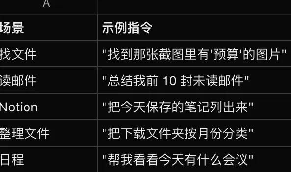 找文件、读邮件、打开 Notion 笔记、整理文件、新建日程——这些基础操作全部没问题,流畅得很。