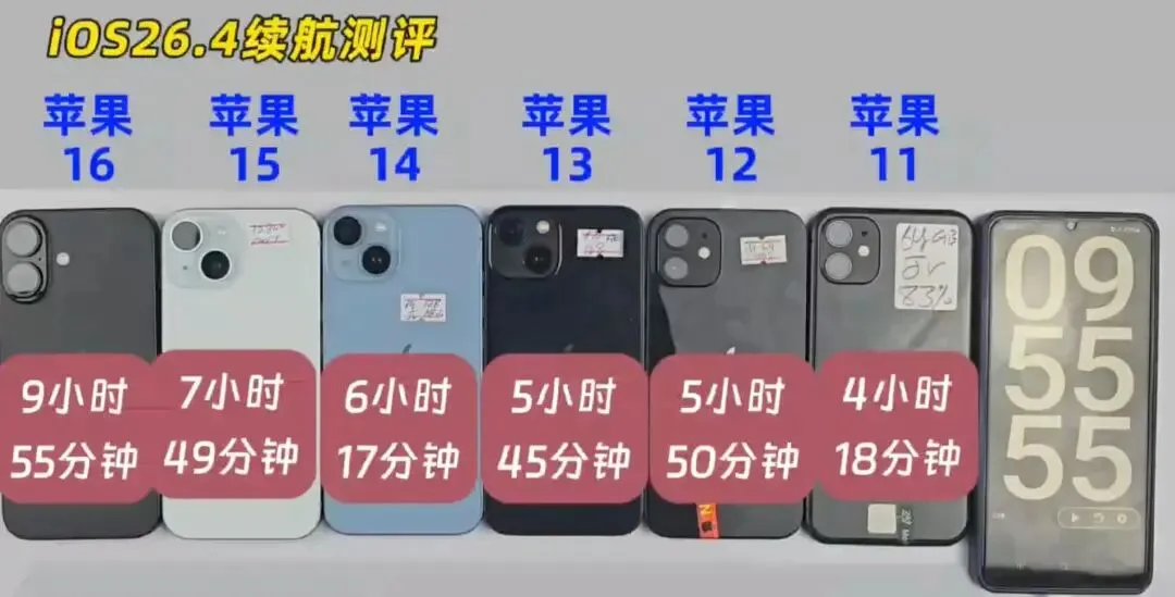 iOS26.4正式版续航实测,6款苹果真实数据出炉,iPhone 16是真香