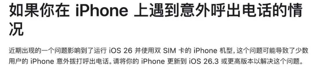 近日,苹果官方回应少数iPhone意外呼出电话问题,确认该故障为iOS 26系统软件Bug,仅影响双卡机型。