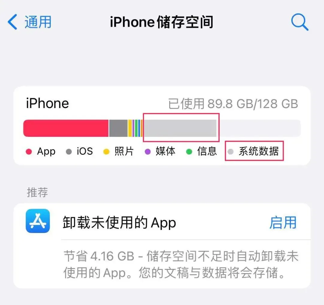 要是发现 iPhone系统数据异常占用太大,可以通过后面方法来释放储存空间。