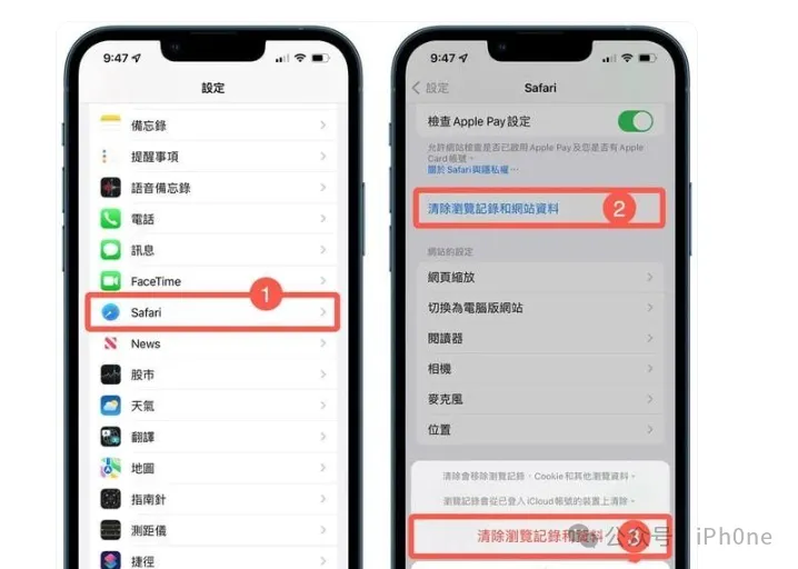 通常使用 Safari 浏览网站时,所有浏览过的网页记录、Cookie 和其他浏览资料都会被暂存在设备内,如果从来没有清除 Safari 暂存,日积月累下可肯定会造成iPhone系统资料越来越肥大。到 iOS“设定”>“Safari”点选“清除浏览记录和网站资料”,会跳出询问视窗,点选“清除浏览记录和资料”即可。建议半年清一次 Safari 浏览纪录和资料就可以,方法2. 自动删除信息记录