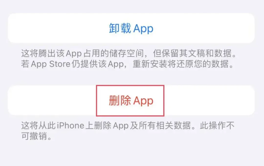 - 微信和QQ等需要保留聊天记录的App不能选“删除App”。