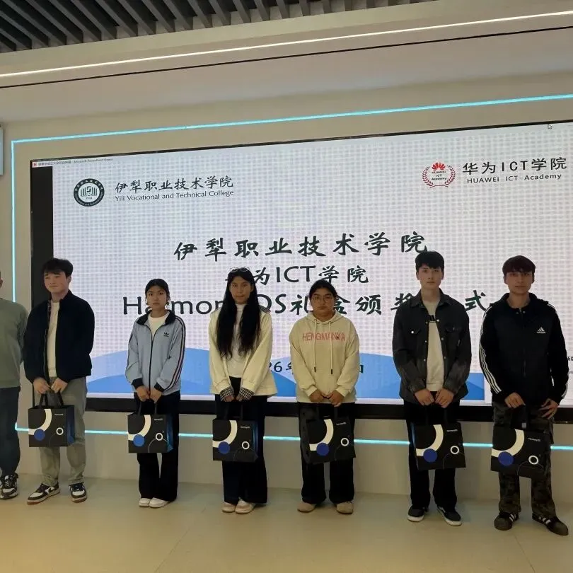 2026年3月25日,春意盎然,伊犁职业技术学院信息楼一楼华为ICT技术展厅内,一场以“鸿蒙启智,筑梦未来”为主题的鸿蒙认证礼盒颁奖仪式隆重举行。